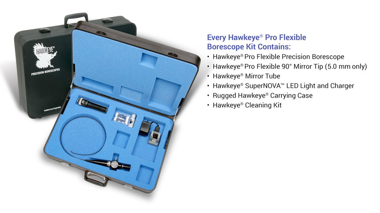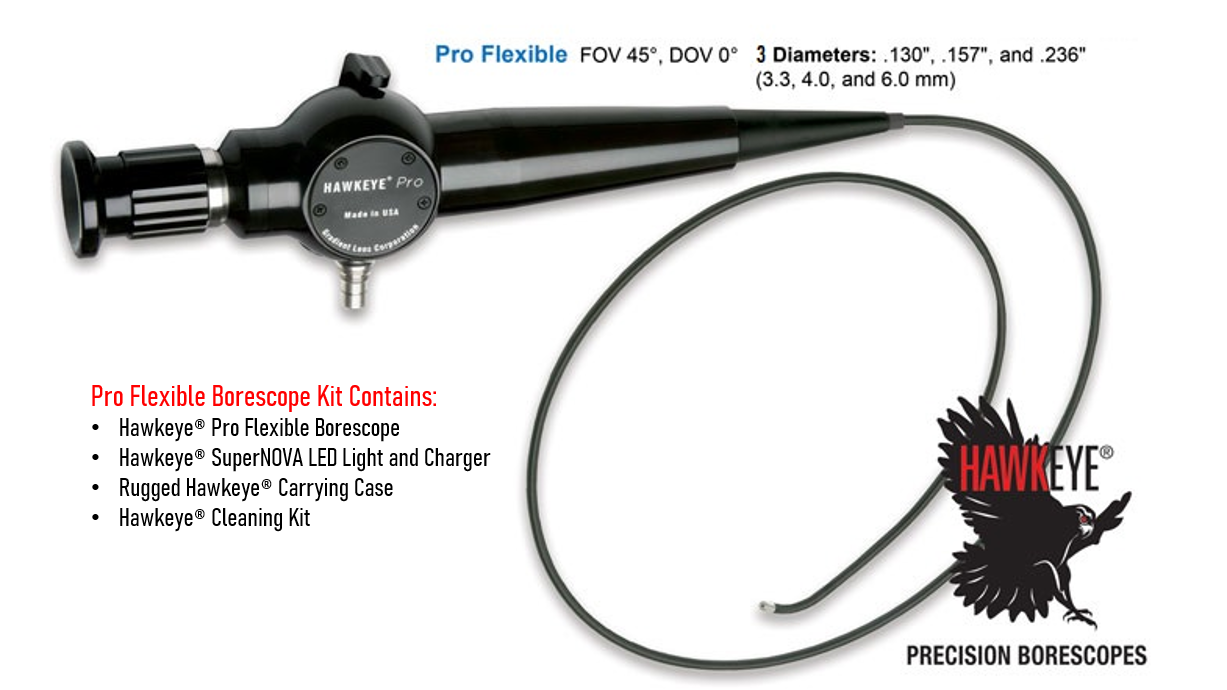 Hawkeye® Pro Flexible Borescopes incorporate an 18,000 fiber, acid-leached imaging bundle, delivering truly excellent image resolution, sharpness, detail, and contrast. Lower cost alternatives do not deliver image quality nearly this high.