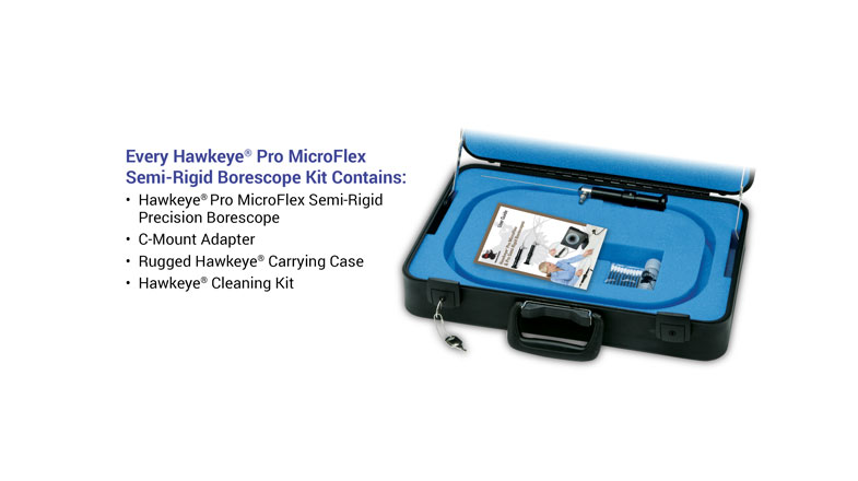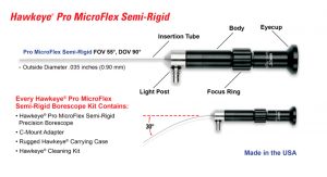 The Nitinol-sheathed Hawkeye® MicroFlex Semi-Rigid Borescopes contain 10,000 fiber imaging bundles, are 6 inches long, and offer 0º and 90º views.